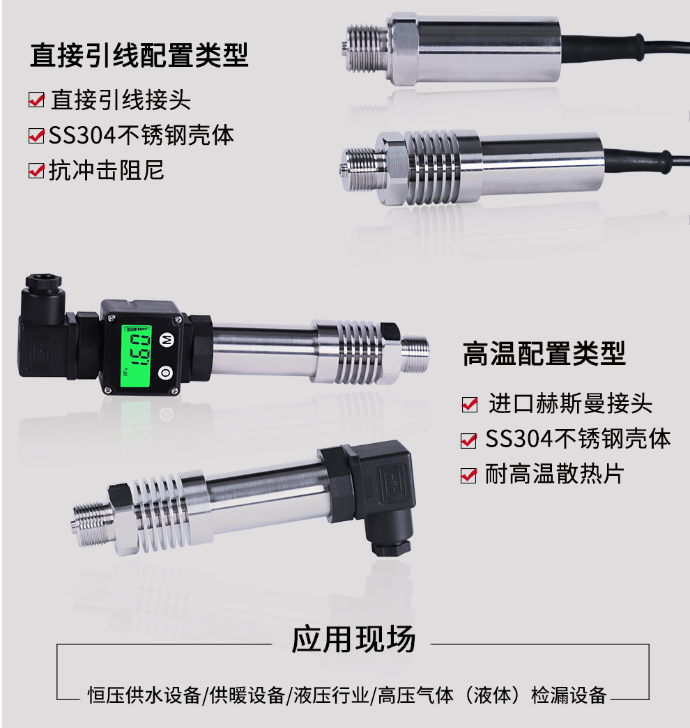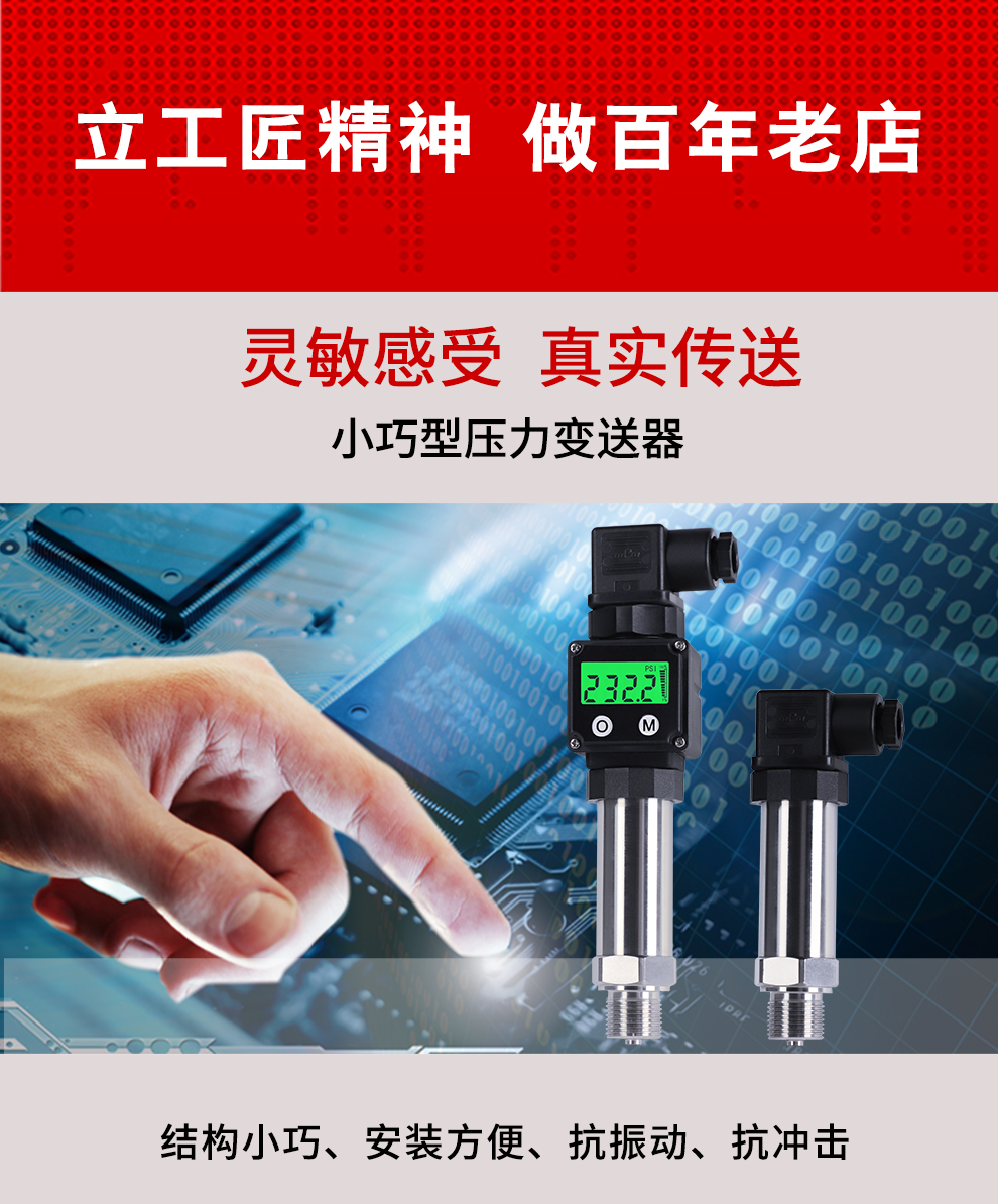 M系列小巧型壓力變送器內(nèi)部使用擴(kuò)散硅壓阻式傳感器,其結(jié)構(gòu)簡單,體積小巧,易安裝;以其優(yōu)良的可靠性、適用性、靈活性和多樣性,廣泛的應(yīng)用于航空、航天、石油、化工、冶金、電力、水利等工業(yè)過程現(xiàn)場的壓力測量和控制。