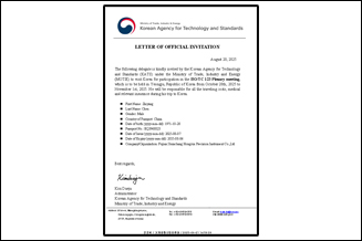韓國科學(xué)院邀請虹潤公司參加國際標(biāo)準(zhǔn)制定的邀請函
