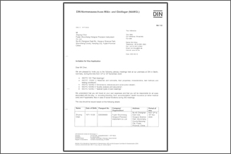 德國標(biāo)準(zhǔn)化學(xué)會(huì)邀請虹潤公司參加國際標(biāo)準(zhǔn)制定的邀請函